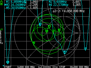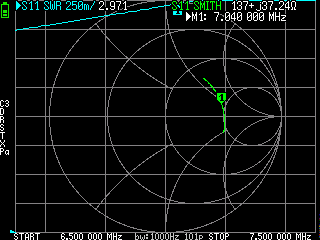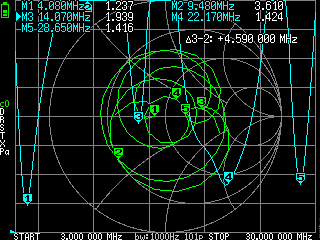 BTW… Where’s the 40m resonance point? It doesn’t show up at all on the nanoVNA. The QMX+ reports 3.6 for 40m, beyond its internal tolerance. Instead, we have a contender for 80m, a band I rarely try. At some point, I’ll try both 80m and 40m with the TR-45L’s internal tuner.