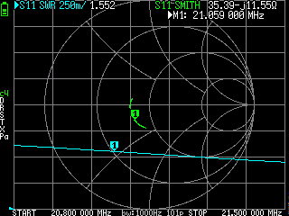 Some very kind communication from “RF Guru,” Joeri, leads to more experimentation. Joeri offered an interesting analysis of my previous post and had a few good suggestions. Among those, I focused on one important aspect of this antenna and how that aspect is achieved. OCF. Off Center Fed, places the feed point at a certain point along the antenna’s wire. In this case, the short side of the antenna consists of using the braid of part of the feed coax … but only part. This antenna should have 16.8 meters of wire on one side of the feed point and 3.7 meters of coax sleeve on the other side.