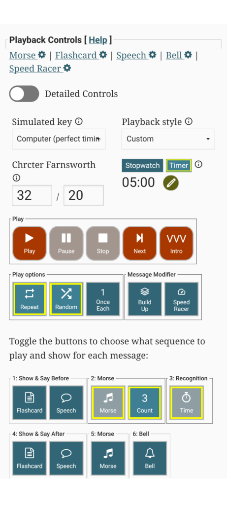 - the tool we use is Word List Trainer from morsecode.world but any tool that lets you set it up like that works