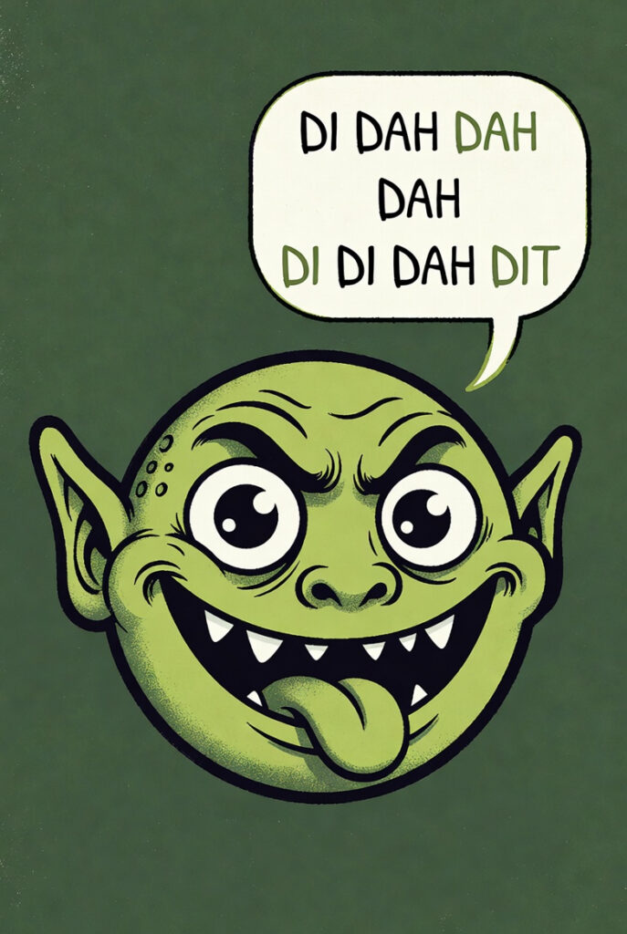 If afflicted, anytime you hear Morse Code, the Decode Monster is instantly activated, takes center stage, starts counting dits and dahs, then looks up the character in its decode table, hence adding translation time to the time needed for character recognition. It’s like the school yard bully that always has to be the center of attention. And it significantly slows Morse Code interpretation. The best Morse Code interpretation comes from being able to INSTANTLY recognize characters by their complete sound, something the Decode Monster actively (and viciously?) prevents.